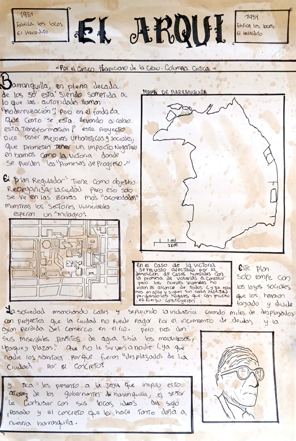 La actividad consiste en crear una página de prensa de los años 50 que explique las implicaciones atemporales del plan regulador de Barranquilla en el sector La Victoria, adoptando el estilo visual y narrativo de esa época: titulares grandes, fotos en blanco y negro, y un lenguaje directo. El propósito es mostrar cómo ese plan regulador, pensado para organizar y modernizar la ciudad, sigue impactando la vida actual en términos de movilidad, diseño de espacios habitacionales y verdes, así como en la identidad cultural del sector. Este enfoque atemporal evidencia cómo decisiones urbanísticas de hace décadas, como el trazado de calles y la planificación de áreas recreativas, han consolidado una estructura urbana y un sentido de pertenencia que aún definen a La Victoria. La actividad ayuda a comprender la relevancia del urbanismo histórico y cómo este sigue siendo una lección valiosa para la planificación urbana actual y futura.